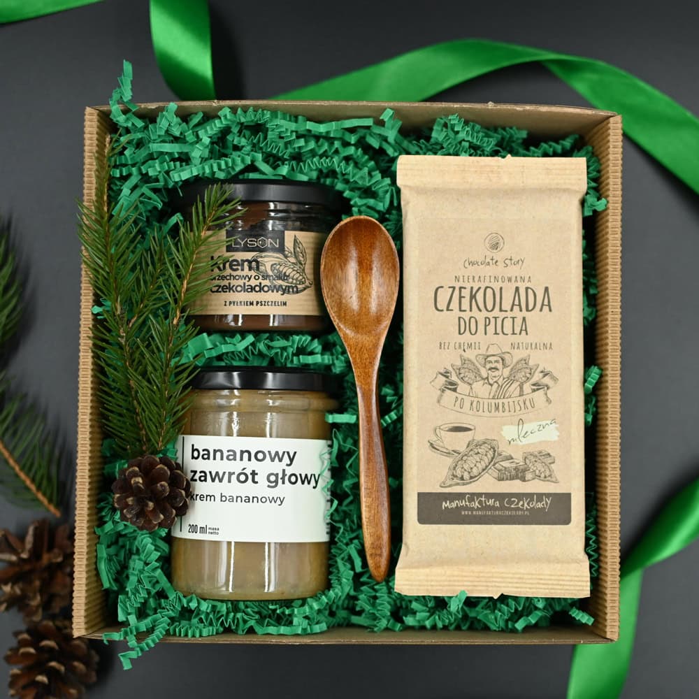 Czekolada do picia, krem orzechowy i krem bananowy.